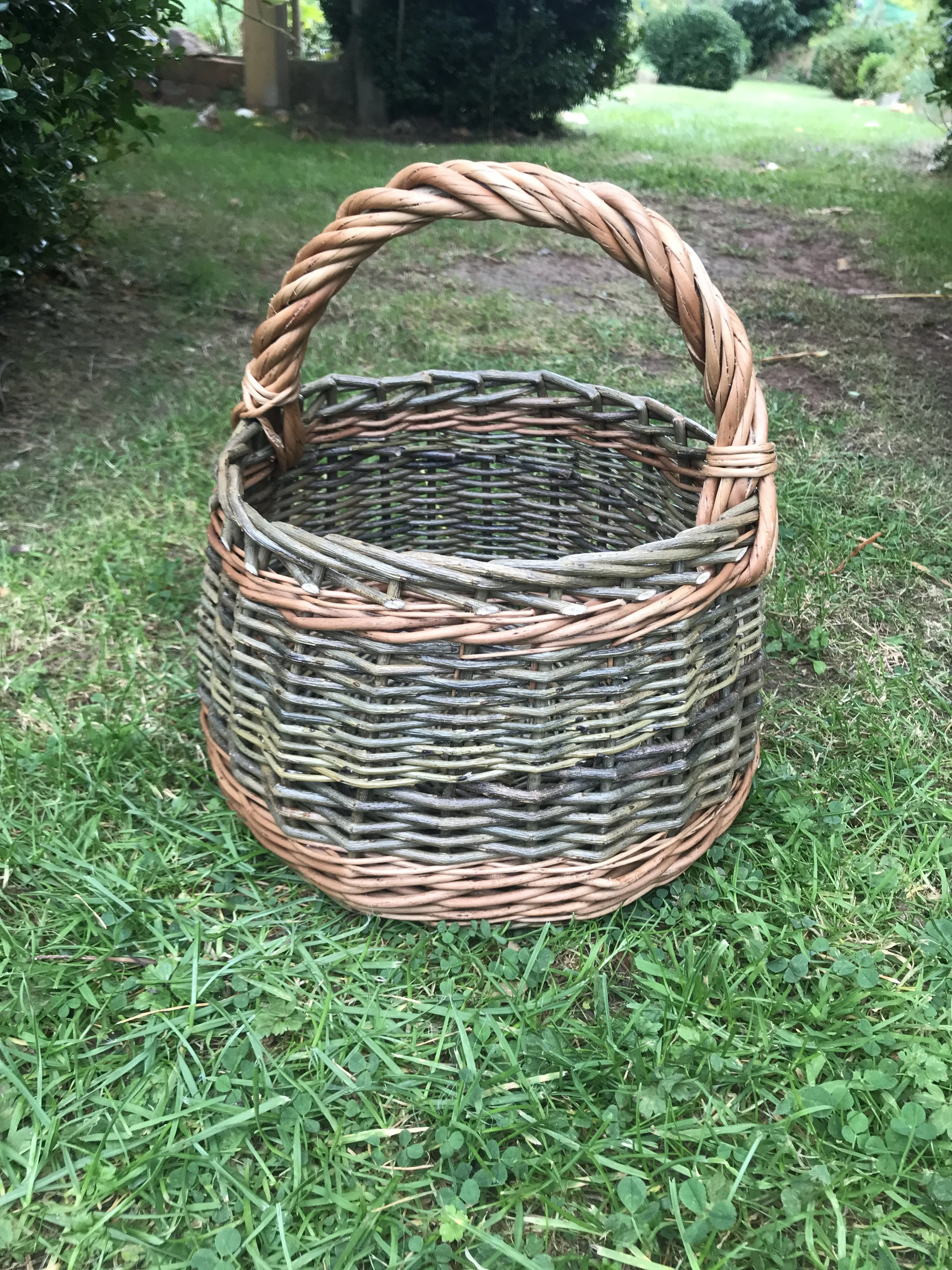 Weave a round based gathering basket over 2 days with a wrapped handle from locally grown willow. Ideal for gathering apples from the orchard and produce from the allotment. You will learn or rediscover many basket making techniques over the course - there will be plenty of opportunity to ask questions about growing and cultivating willow, together with techniques for making baskets. The workshop space is light and airy with mid morning and afternoon refreshments, together with a fabulous lunches! No previous experience required